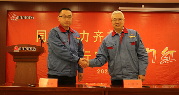 山东国众机械科技有限公司于2026年1月6日上午在办公楼五楼隆重举行首季“开门红”动员活动暨目标责任书签约仪式,会议主题为“同心聚力齐奋楫,笃行实干开门红”,公司全体员工参会。